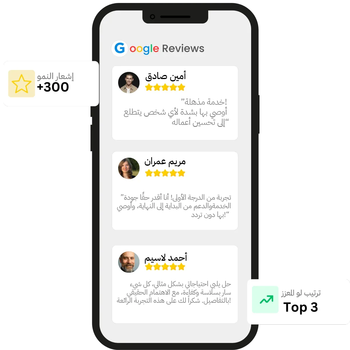 نحن نساعد الشركات مثل شركتك في الحصول على مرتبة أعلى على جوجل، وجذب المزيد من العملاء وزيادة المبيعات من خلال استراتيجيات تقييم مثبتة.